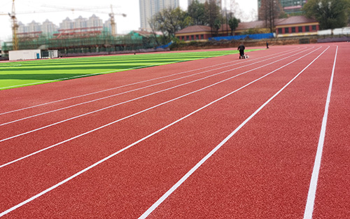 學校操場跑道一般采用塑膠材質(zhì),這種跑道具有平整度好、抗壓強度高、硬度彈性適當以及物理性能穩(wěn)定的優(yōu)點。塑膠跑道主要由聚氨酯預聚體、混合聚醚、廢輪胎橡膠、EPDM橡膠?;騊U顆粒以及顏料、助劑、填料等材料組成。