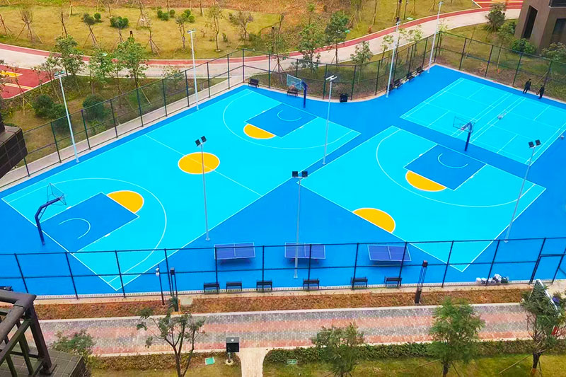 學校籃球場地面材料的選擇應根據(jù)具體情況而定。在條件允許的情況下,優(yōu)先考慮使用實木地板、硅PU材料或丙烯酸材料等高品質(zhì)材料,以提供更好的運動體驗和安全性。同時,也需考慮材料的成本、施工難度、維護要求以及使用頻率等因素。