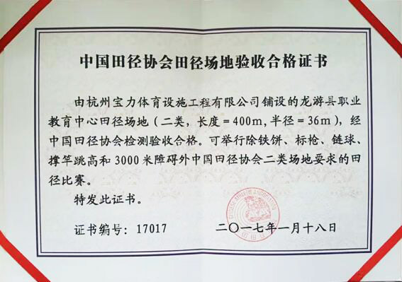 近日,由杭州寶力體育設(shè)施工程有限公司承建的龍游縣職業(yè)教育中心400米田徑場(chǎng)正式落成,田徑場(chǎng)的塑膠跑道和人造草足球場(chǎng)地完全按照國(guó)家標(biāo)準(zhǔn)田徑場(chǎng)進(jìn)行建設(shè),順利通過了中國(guó)田徑協(xié)會(huì)專家驗(yàn)收。同時(shí),獲得了專家組和當(dāng)?shù)仡I(lǐng)導(dǎo)的一致好評(píng),成為龍游標(biāo)桿型場(chǎng)地,為龍游縣職業(yè)教育中心提供了健全的體育場(chǎng)地,讓更多人有機(jī)會(huì)擁有專門的體育訓(xùn)練的場(chǎng)地。