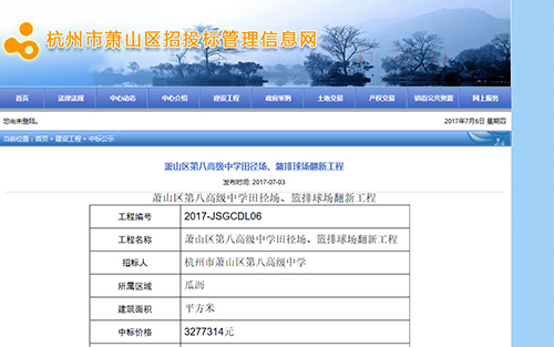 2017年7月3號中標(biāo)蕭山區(qū)第八高級中學(xué)田徑場、籃排球場翻新工程