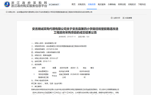 2018年7月11號中標(biāo)安吉縣第四小學(xué)田徑場塑膠跑道改造工程項(xiàng)目