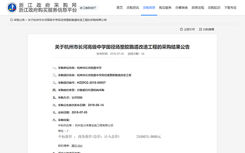 2018年7月5號中標(biāo)杭州長河高級中學(xué)田徑場塑膠跑道改造工程項(xiàng)目公告