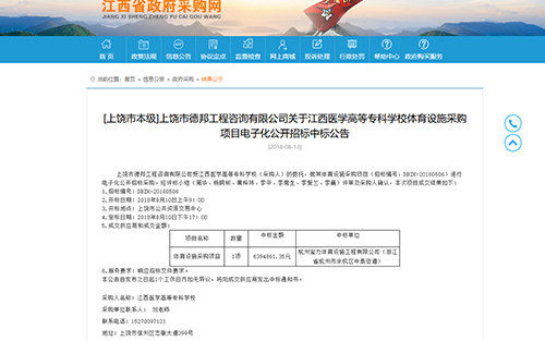 2018年8月13日中標(biāo)江西醫(yī)學(xué)高等??茖W(xué)校體育設(shè)施采購項(xiàng)目公告