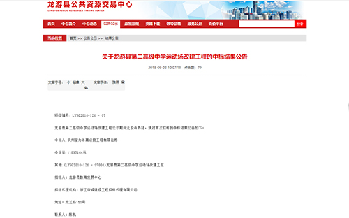 2018年8月3日中標(biāo)龍游縣第二高級中學(xué)塑膠運(yùn)動(dòng)場改建工程公告