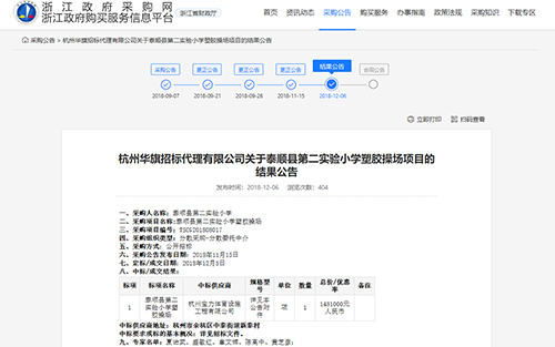 2018年12月6日中標(biāo)泰順縣第二實(shí)驗(yàn)小學(xué)塑膠操場建設(shè)項(xiàng)目公告