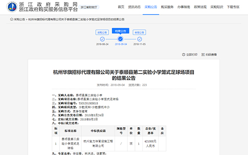 2018年9月4日中標(biāo)泰順縣第二實(shí)驗(yàn)小學(xué)籠式足球場建設(shè)項(xiàng)目公告