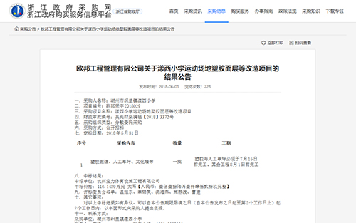 2018年6月1日中標(biāo)漾西小學(xué)運(yùn)動(dòng)場地塑膠面層改造項(xiàng)目公告