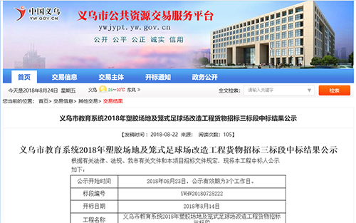 2018年8月22日中標(biāo)義烏市教育系統(tǒng)塑膠場地及籠式足球場改造工程項(xiàng)目公示