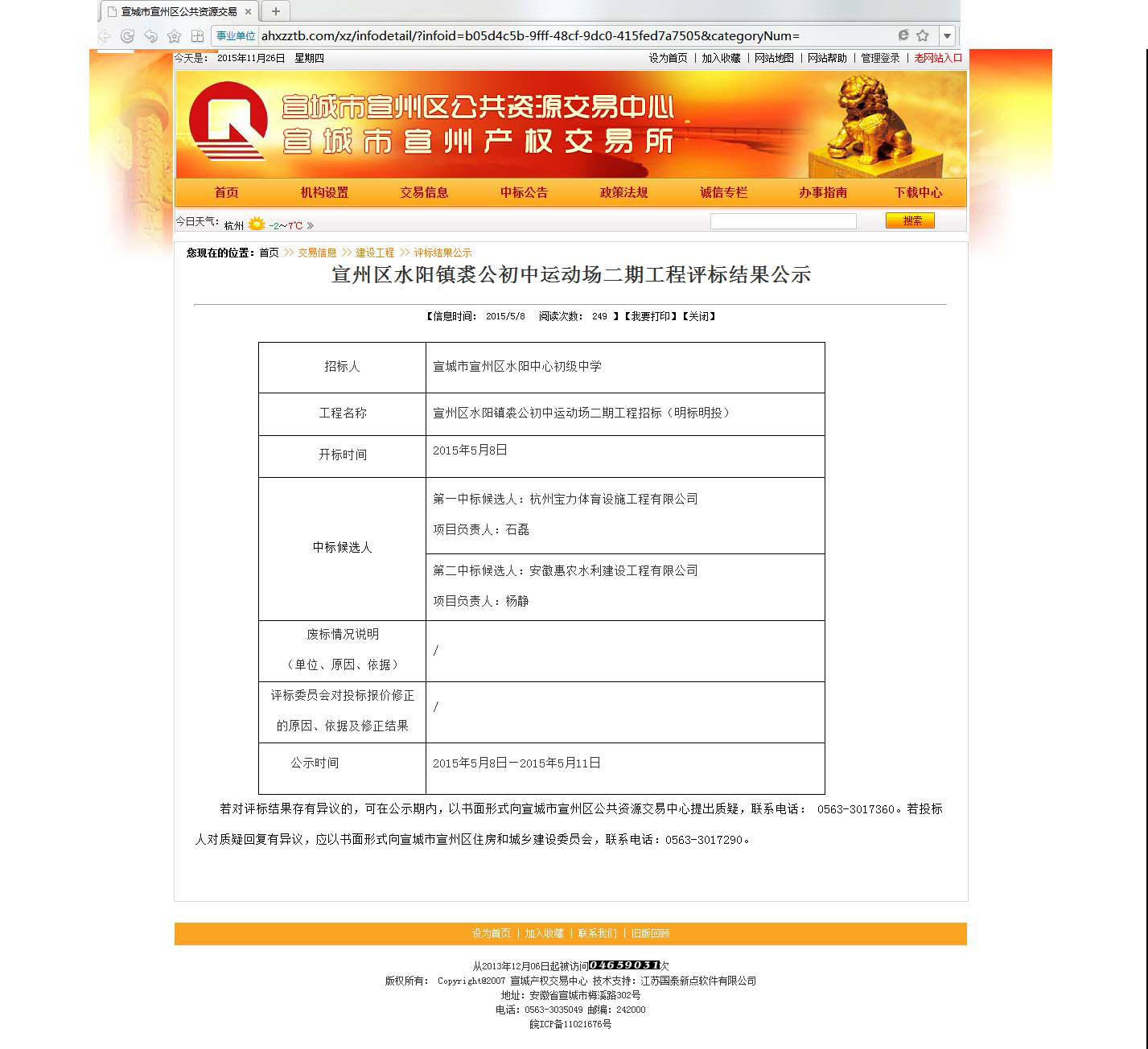 下一篇:杭州寶力體育中標徽州區(qū)西溪南鎮(zhèn)中心學校室外塑膠場地工程