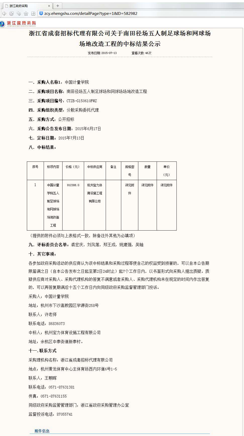 上一篇:杭州寶力體育中標(biāo)浙江經(jīng)濟職業(yè)技術(shù)學(xué)院2015年室外球類場地改建項目