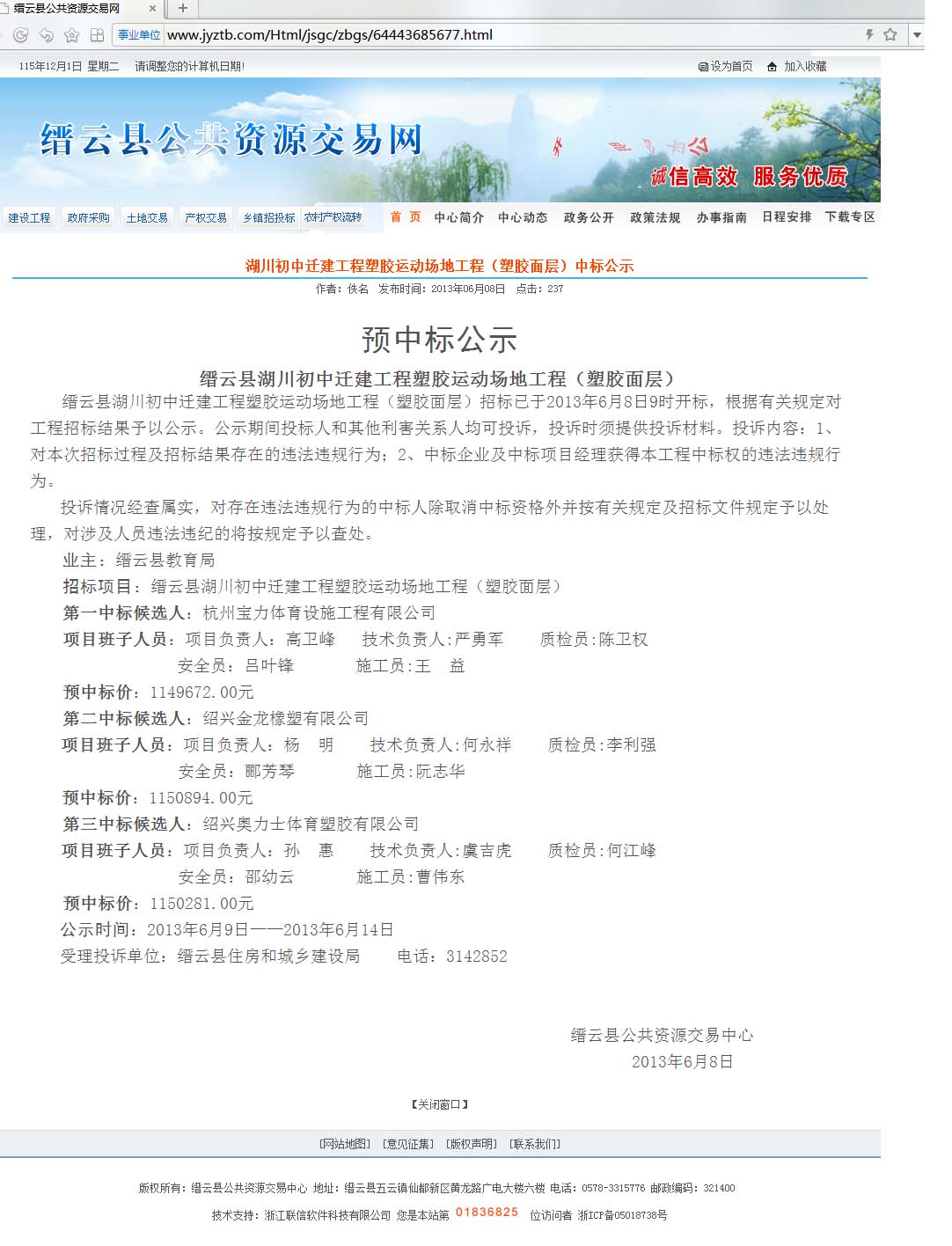 湖川初中遷建工程塑膠運(yùn)動(dòng)場(chǎng)地工程(塑膠面層)