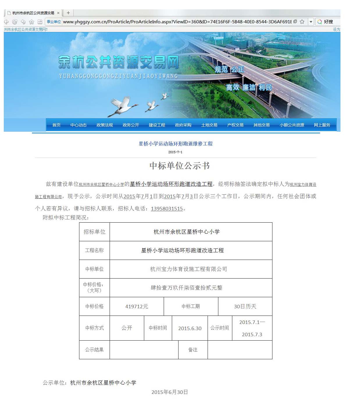 上一篇:2015年4月28日中標(biāo)蕭山區(qū)瓜瀝鎮(zhèn)二小合一(任伯年小學(xué))300M田徑場及附屬工程