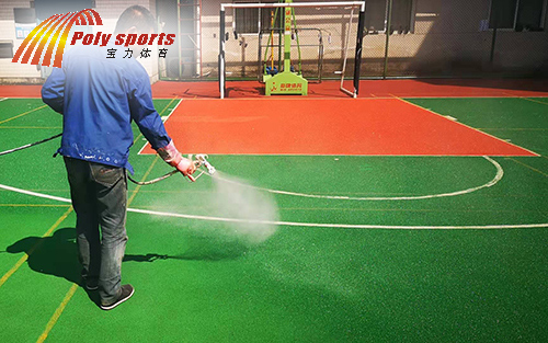 浙江藍天環(huán)保塑膠籃球場維修找上寶力體育